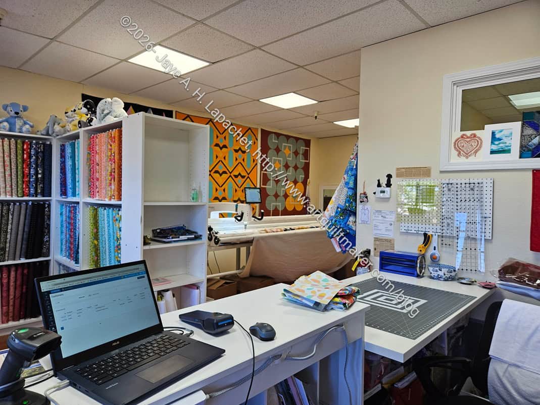The shop started out as just a longarm studio where customers could meet Dana, the owner,and drop off quilts. Now that Always Quilting is closing Dana is adding a few more quilt shop type items. She has a little fabric, a few notions and she will add more slowly.
