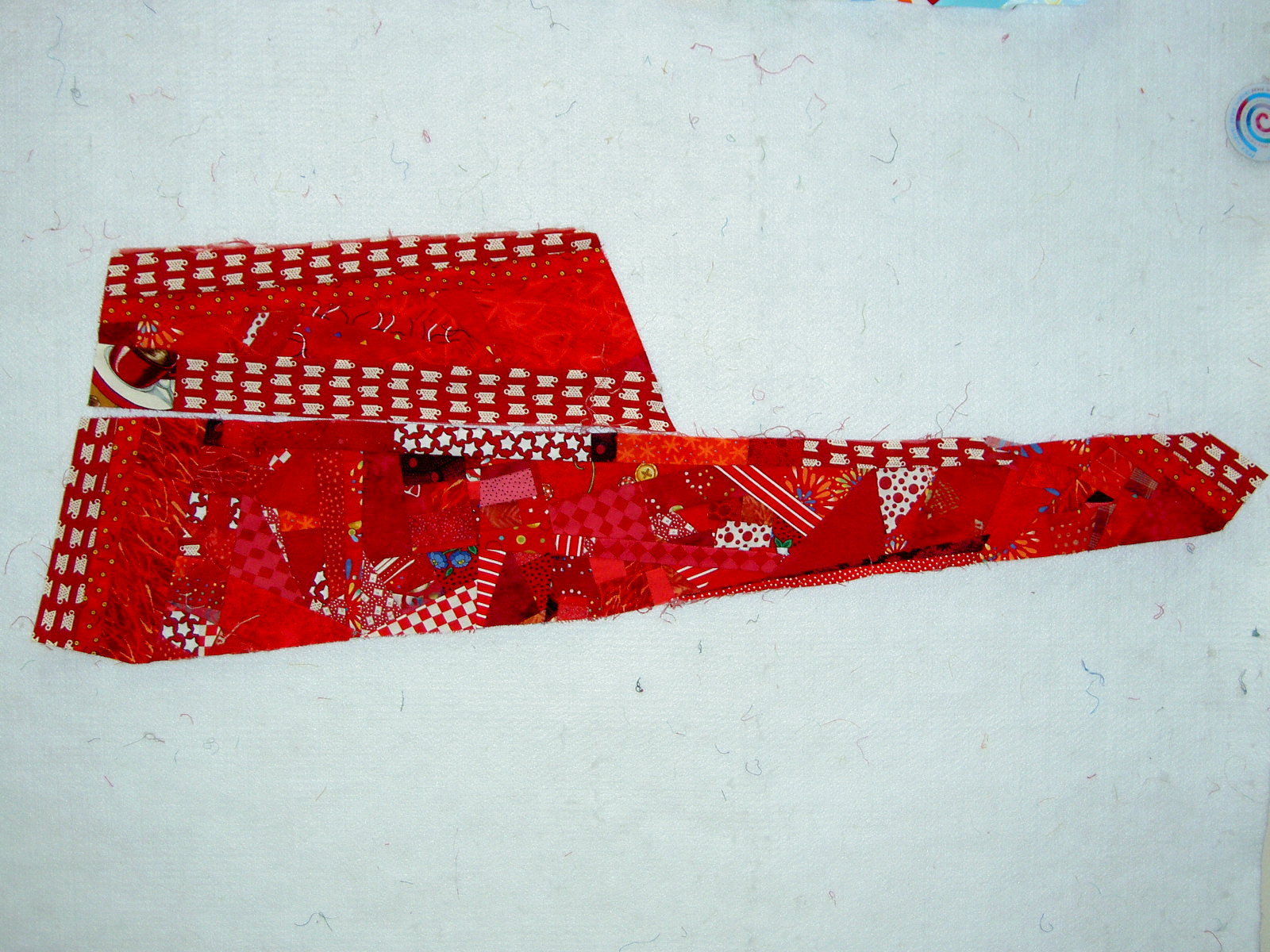 I haven’t worked on it for a long time as the piece has been covered by strips that I still feel compelled to collect for the Spiderweb. I saw the mosaic pieces peeking out from under said strips the other day and was reminded that I have some reds I could add to make the piece larger. Since I haven’t done any sewing this week, I thought it would be something to share with you all.