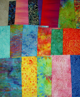 TFQ and I saw this class sample at Black Cat Quilts when she was visiting in April. It is from the Weeks Ringle and Bill Kerr book, Quiltmaker’s Color Workshop: the FunQuilts’ Guide to Understanding Color and Choosing Fabrics. Gretchen was out of the book so I had to buy it from somewhere else. That meant that we couldn’t look at the book or the directions for the quilt.The pattern is pretty easy, so it doesn’t really require a class or a pattern.