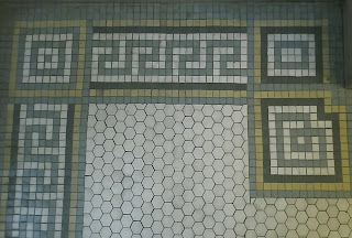 Mosaics Downtown There is an old building downtown that I visit periodically for an appointment. I finally figured out how to get the photos off of my computer. Here they are, corners and all. Note the two different corner blocks?