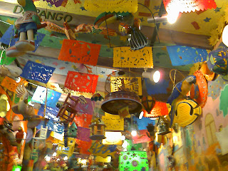 First, they had fantastic decorations hanging all over the walls and ceilings. Many of these items were hand crafted from items you can buy at IKEA. There is a green lamp in the lower right hand corner of the photo above. It is garbage can that has been embellished and had a hole cut in it.
