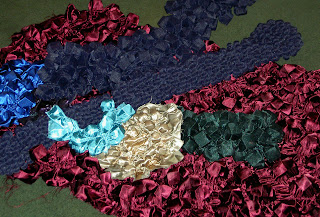 Debbie talked about taking a summer course at Cabrillo College with Richard Elliott. The class was called something like Frankenstein Fabric and they learned to manipulate fabric in new and interesting ways. The fabric above has been manipulated so that it has little puffs all over it.