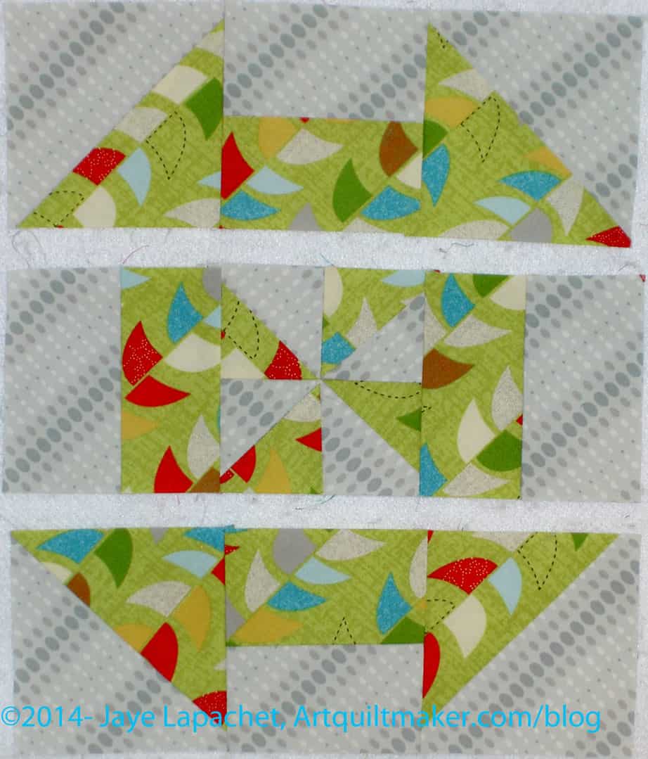 13. Sew all the pieces together so you end up with a block in the Pinwheel configuration.