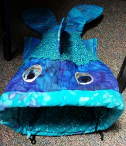 Everyone showed such great stuff. Jennifer is really having a lot of success sending materials to magazines. Maureen continues to try new dyeing techniques. Carolyn showed the most hilarious, but fantastic fish pillow. People encouraged her to enter it into the show. It would be a great piece for one of the tabletop cabinets.