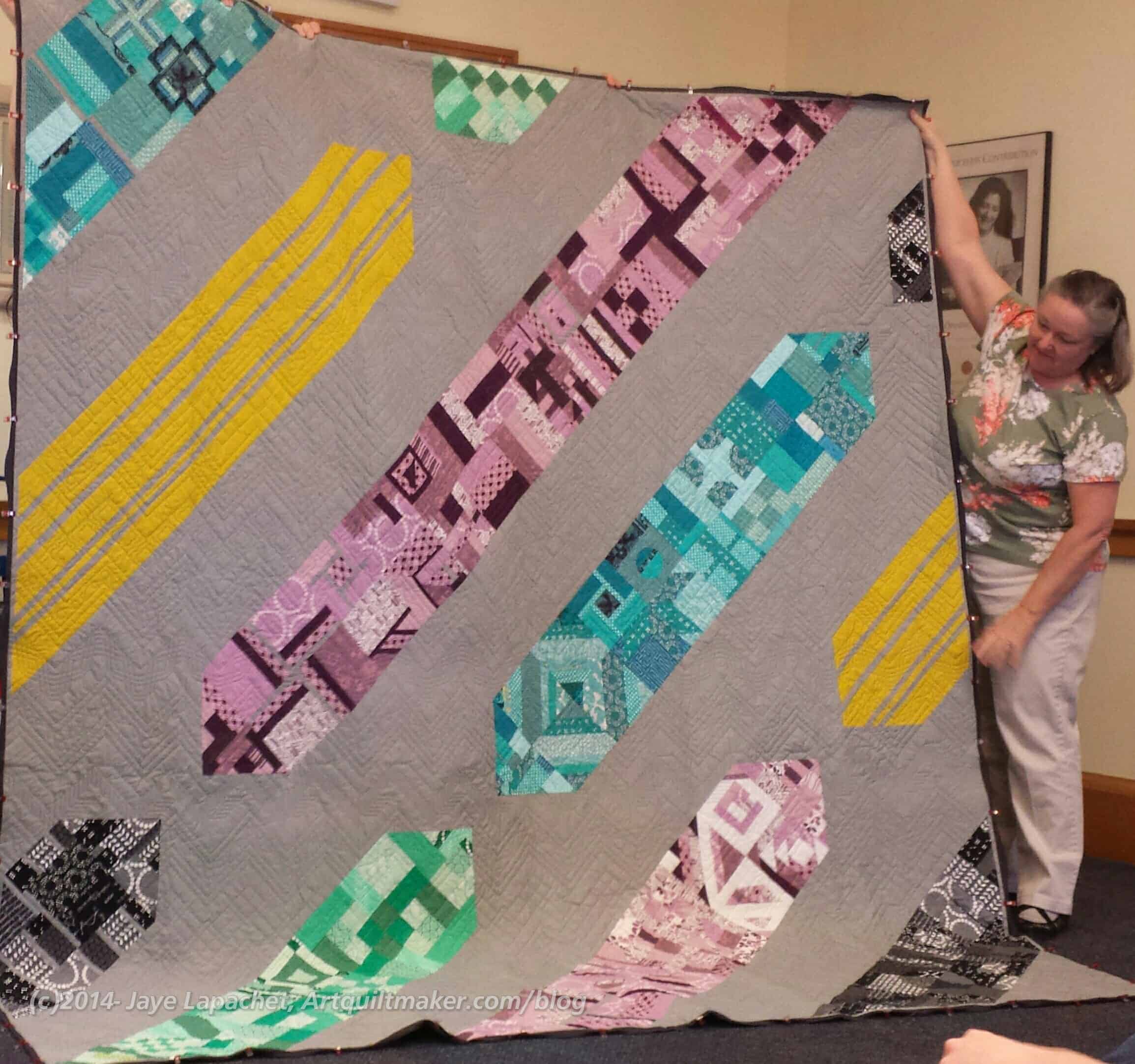 Ruth designed it and it is a very unique design that will be appealing to modern quilters, at the very least. Marci Gore designed the quilting and stitched it out on her computerized longarm.