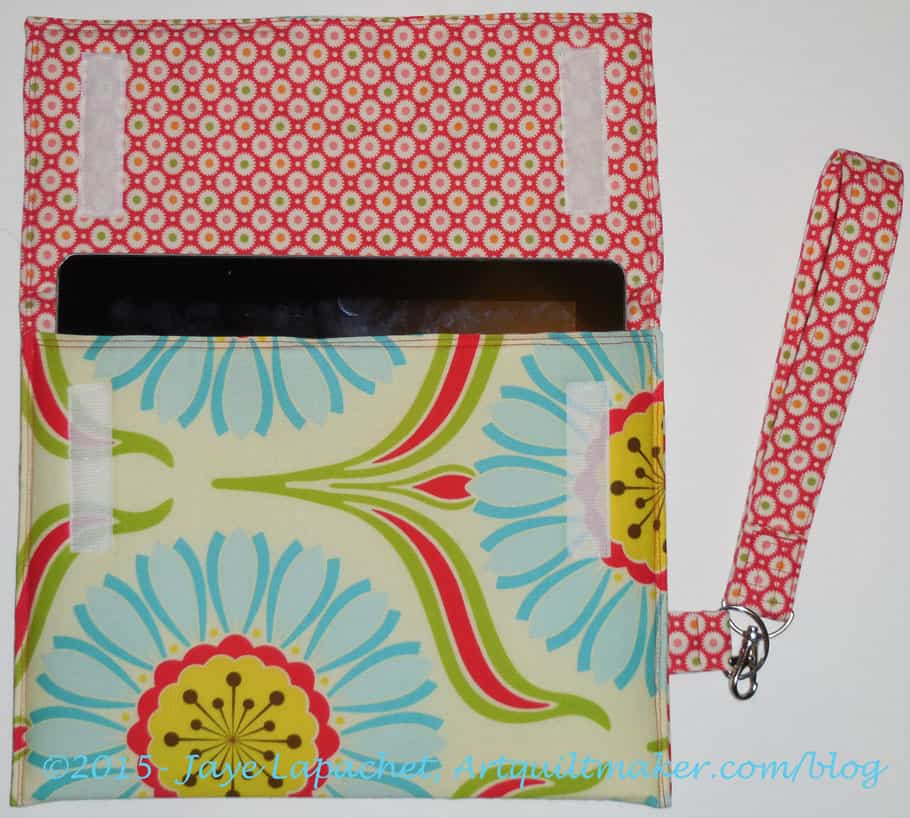 As I mentioned above, I sewed the pocket to the inside of the cover. There was no mention of sewing the tablet cover together. Even reading over the steps above and below, I could find no spot that said to sew the cover together so it looked like an envelope, so I did my best when I got to that spot.there were three sections, so it wasn’t difficult and I used monofilament so the stitching wouldn’t show up.