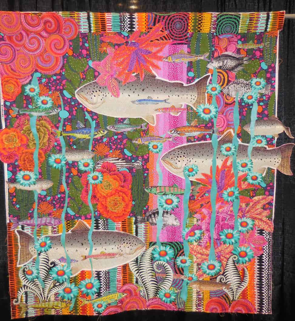 You might remember that I talked about Freddy Moran’s new ‘appliquilt’ style of work. I was pleased to see one of her quilts, Cactus Fish, a collaboration with Alethea Ballard, in this style at the show. It was one of the quilts she showed in July. I just can’t remember if it was finished at the time or if it was still in progress.