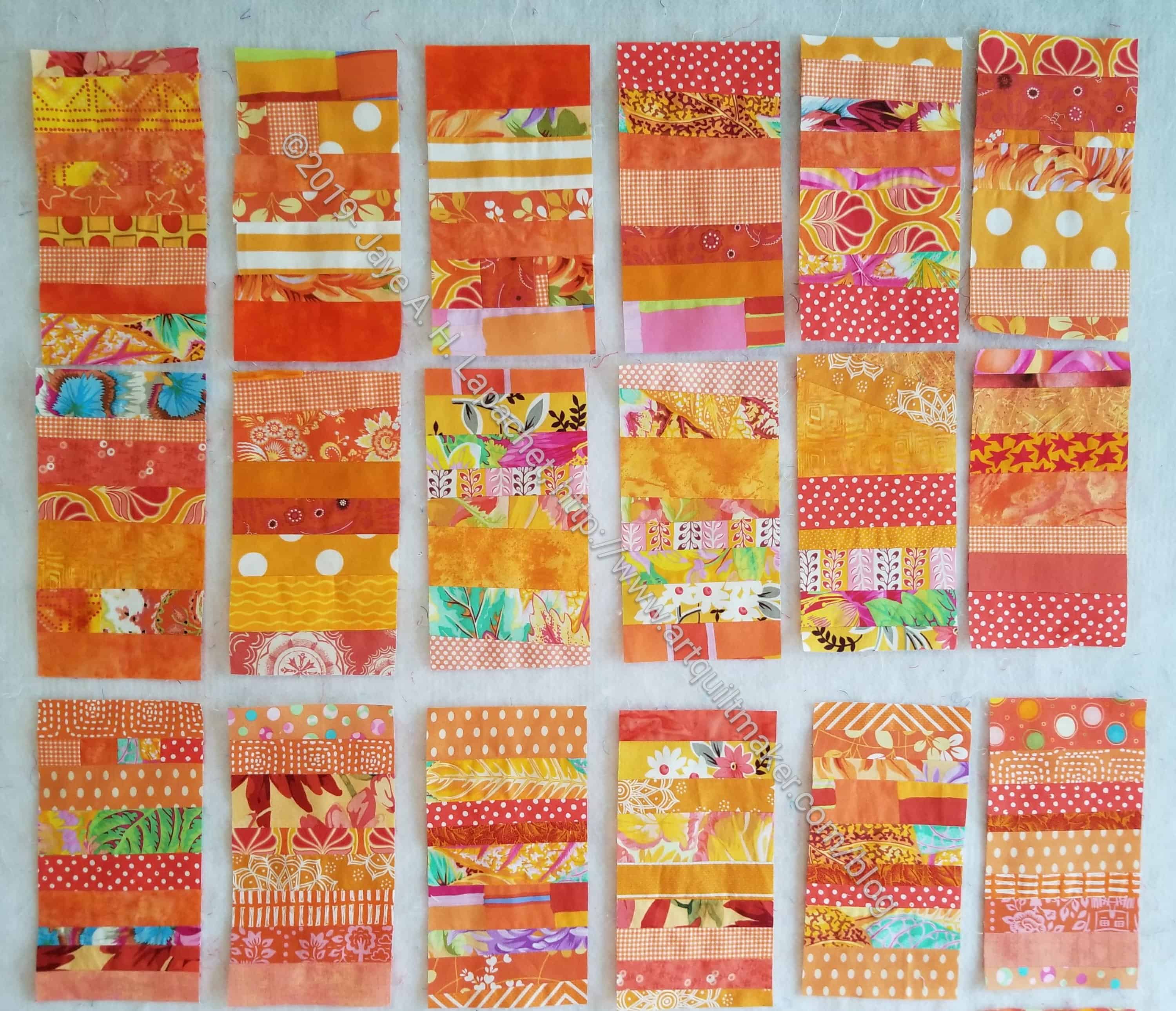 As I worked on various projects over the weekend, I added to my stash of Orange Strip Donation Blocks. I am a few short of being ready to put the blocks all together into a quilt top.