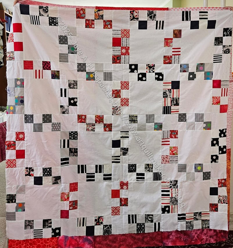 I definitely need to think about less white in the Half 16 Patch blocks. This quilt is VERY white and you don’t really get the sidewalk effect with so much white.
