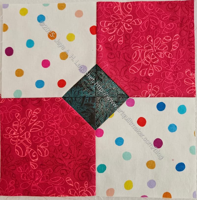 I have to make this block for another project and I found the instructions to make this one SO easy. I have always dreaded the flippy corners method. No problem on this block. It came out great, especially after the grief with Block 8.