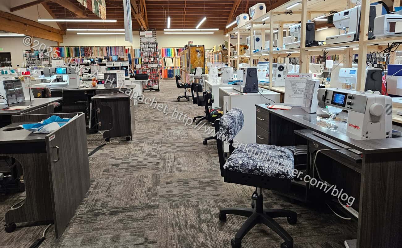 This shop, Paramount Sew & Vac, in Eugene was one of the shops of which I had never heard. It also would not have been on my radar if it hadn’t been in the Shop Hop magazine. When I see ‘sew and vac’ I don’t think quiltmaking. Stereotyping, I know and I need to try and curb that.