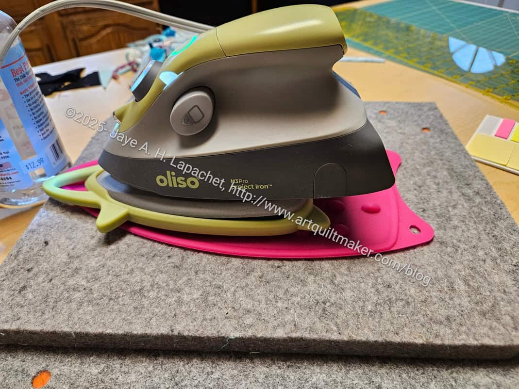The ironing station was, again, in the kitchen. We used Julie’s small iron, because it is an Oliso v.2 and has a cool headlight feature. It might be a hotter iron, because we had to stack up a couple of ironing pads for when the iron wasn’t in use. I didn’t have to do that last time I was there. Later we found a full sized ironing board in the closet by the front door. I am not sure I have ever looked in that closet! Good to know for next time.