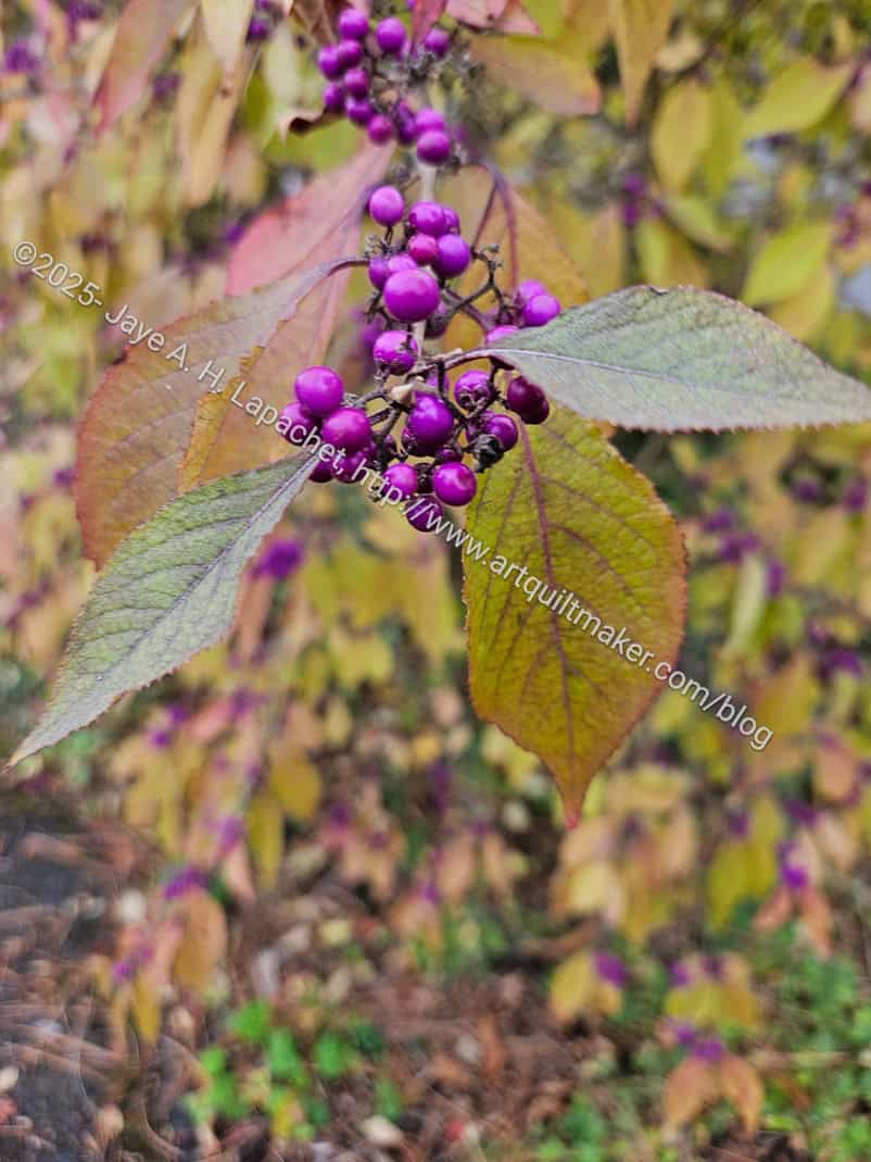 I saw this gorgeous purple berry a couple of times. This photo was taken in front of Pioneer Quilts. I really love the color. Someone said they thought it was poisonous. I didn’t see any birds eating the berries.