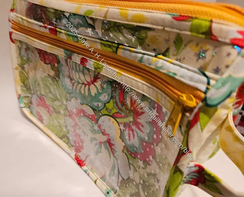 I was able to use one ByAnnie 30 inch double pull handbag zipper for both of the zippers needed in the project. The yellow of the zipper doesn’t go exactly with the fabric I chose, but I think it looks good. There are not as many zipper colors as fabric colors.