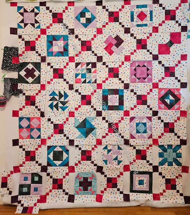 The blocks looked very crowed when I put them all up on the design wall right next to each other. Now