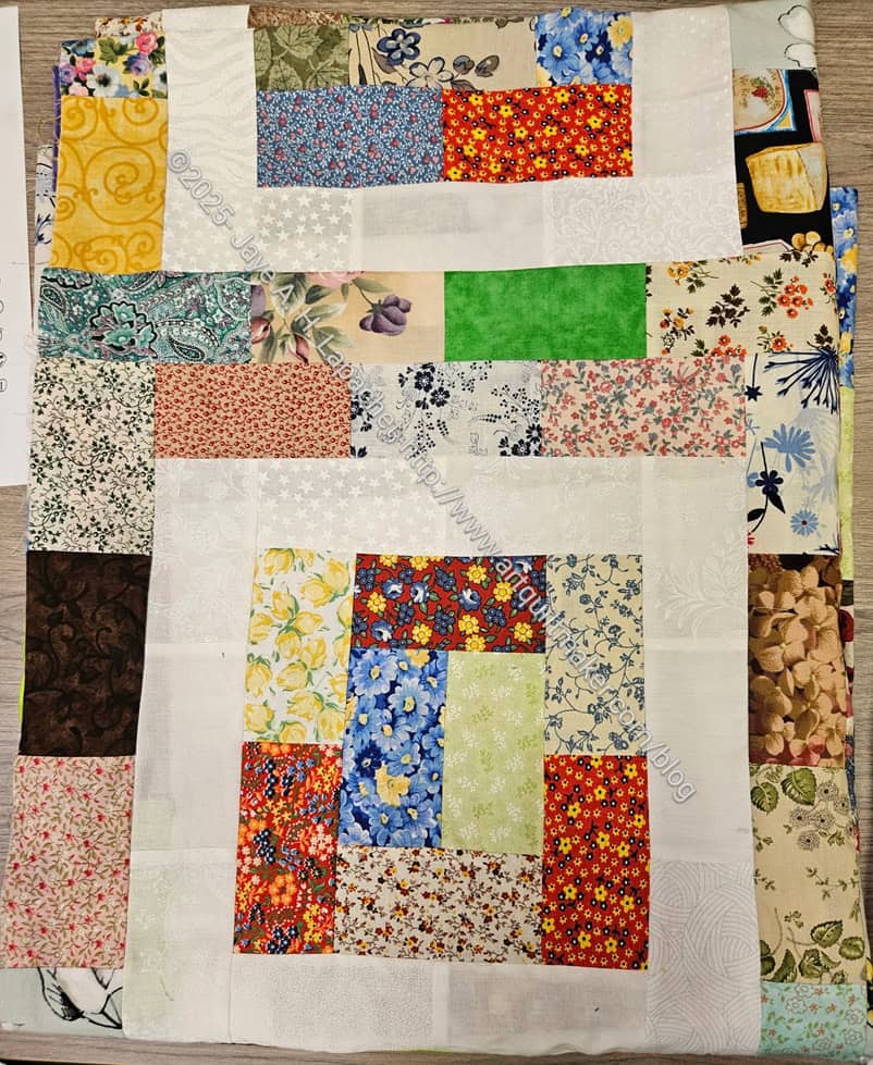 I talked a little bit with Lynette about Potato Chip quilts at the Retreat, so I knew about them, but have never made one. I have to say that I am excited to try one with some 2.5×4.5 inch piece I cut for another project I will never make.