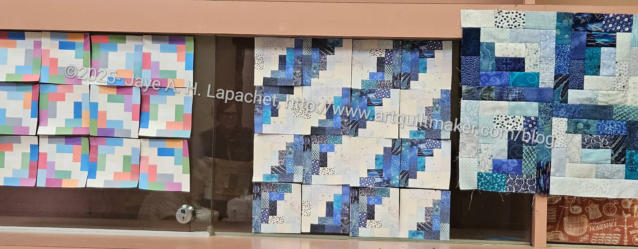 Jaysa made some paper examples showing additional layouts. These layouts look like Log Cabin blocks, but are Potato Chip blocks.