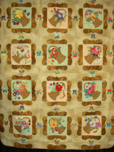 - See: started in a David Walker class. Needs fusing, stitching on of fused pieces and quilting