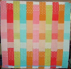 I do like the lines of vertical color, but I also like the horizontal lines of pattern. This wasn’t something that I noticed when I was making the quilt. I didn’t notice it until it was held up to be photographed. It made me think that this pattern could be used successfully with other fabrics, such as the Philip Jacobs large scale flower prints.