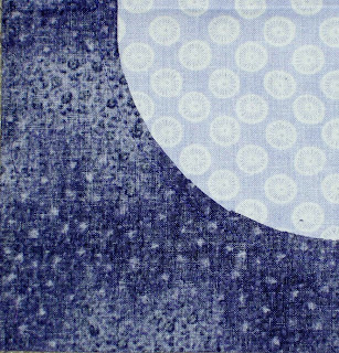 Once the circle is cut, I open it up, line up the pressed fold lines of the background and the circle and, voila’, the piece is ready to sew.