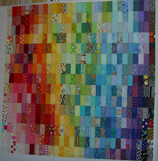 I have mentioned dozens of times that I have been working on and off on the FOTY project all year. That is sort of the idea of FOTY (Fabric of the Year). You work on it all year, especially cutting fabric. In my case I also sewed some of the patches together. Now the top is finished and I will soon be moving on to FOTY 2009.