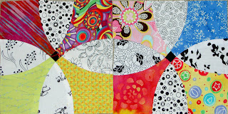 I am doing backs in a little different way now. I decided that the large Philip Jacobs and Martha Negley prints I love so much would be great backs. I am taking some of the giant pieces I bought recently and putting them on the backs. I am still committed to piecing my backs, but am taking a break from tiny pieces. I am trying to use larger pieces. This makes making the backs much faster to piece. It also means that those large prints are shown off to their best advantage.