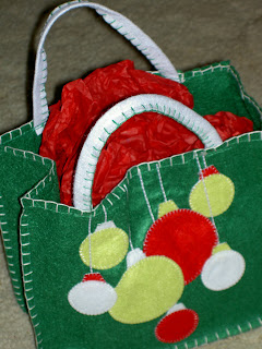 How do you like this gift bag? The bottom has something slightly stiff in it, so it stands nicely up to attention. It is made out of felt, so I may be able to make lovely designs with embroidery (using my machine’s embroidery function) on the front instead of the applique’. The blanket stitch can be done on the machine as well. I’ll have to try it. One thing I like about it is the cute size.