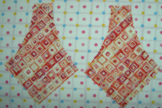 I made the template and cut out a couple of the middle squares and sewed them to a couple of the corner pieces as a test. All worked perfectly!
