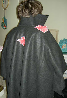 The Halloween costume, except for some decoration, which are drying, is finished. The Darling Child is happy and I didn’t have to buy anything except 2 yards of black felt. I like using felt for Halloween costumes, because the raw edges don’t ravel. You can also just cut it off, glue things to it and cut strange shapes out of it with no problem. The costumes are a bit fragile and don’t usually last long. You can see the cloak that I made by looking at this picture from Wikipedia.