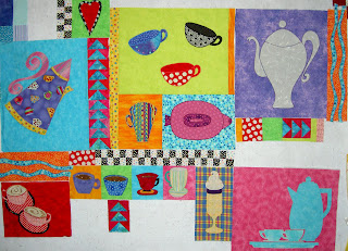 - The Tarts Come to Tea: Top finished in 2009. Adding a few bits of machine applique’ before I baste and quilt.